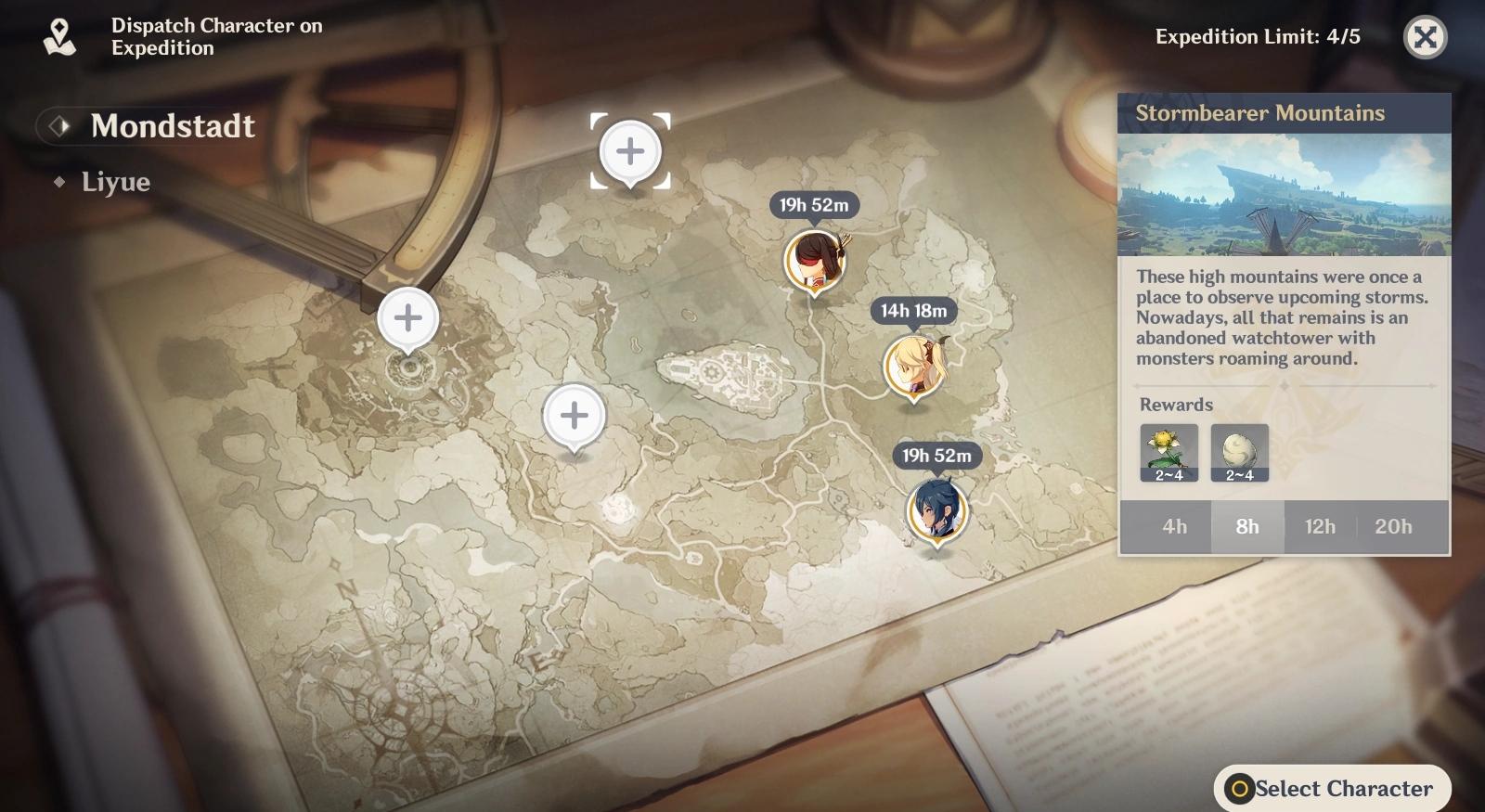 Gamers can dispatch a personality for 4, 8, 12 or 20 hours for mora to obtain 625, 1,575, 2,500 and 5,000 respectively. Throughout expeditions, we advocate dispatching characters with character bonuses. They’ll both minimize down the time wanted to finish every expedition or can help you achieve extra rewards.