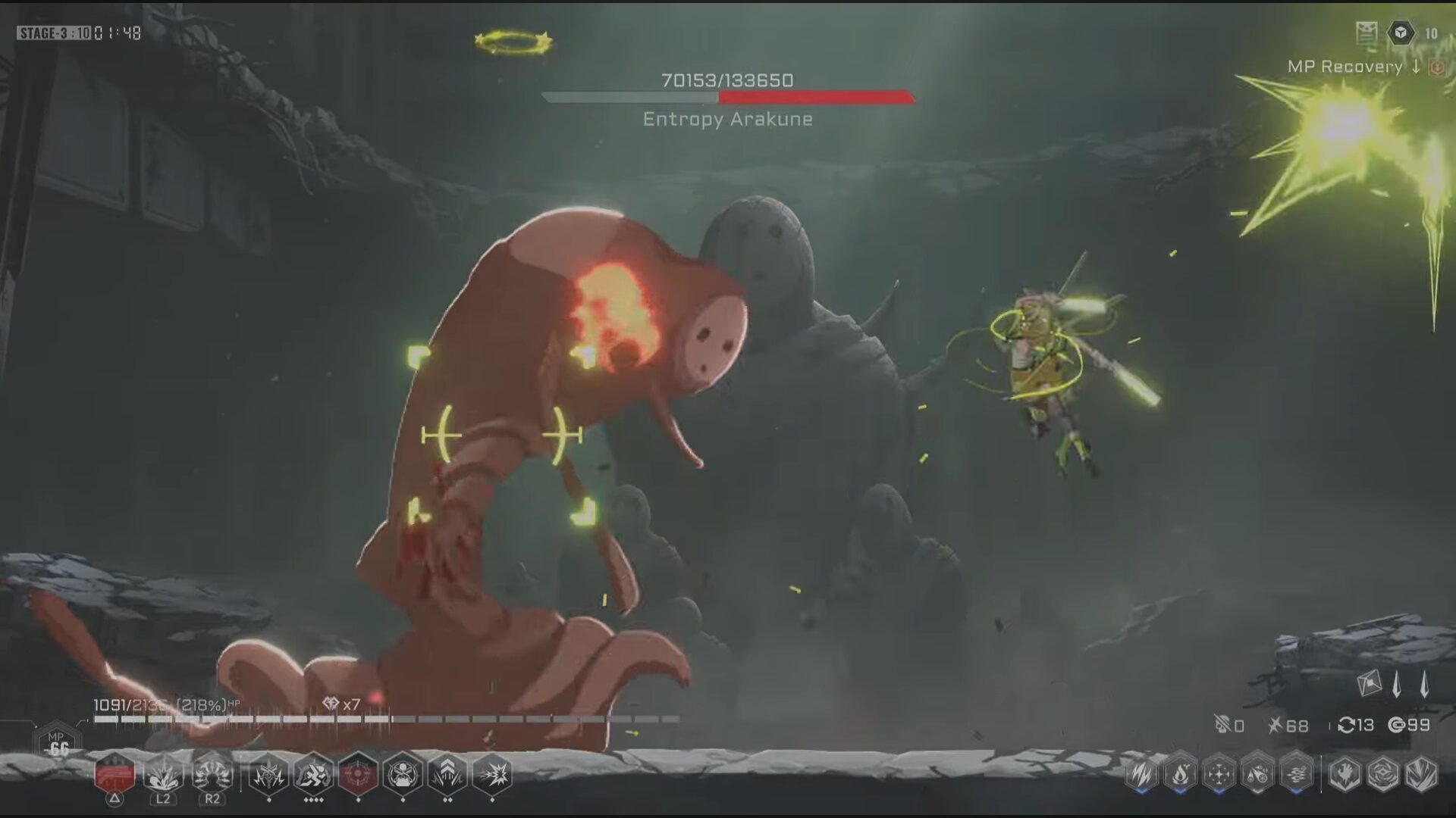 The fight is “simply” half of the sport, and now we have the opposite half that I can speak about; the roguelite techniques and development in character development. All through the sport as you progress, you achieve entry to extra in-depth techniques, clearly. One of many easiest techniques is the Techniques system, which is basically randomly gaining quite a lot of further power-ups you could connect to assault and ability utilization. These vary from floating swords, homing ice spikes, and a variety of alternative ways so as to add to your Sprint/Dodge method on the R1 button. In addition they steadily get extra highly effective, going from white to probably the most highly effective coloration that I final noticed, darkish crimson. I’m pretty sure the darkish crimson ones have an precise identify, nevertheless it’s kinda humorous simply to name it “darkish crimson.”